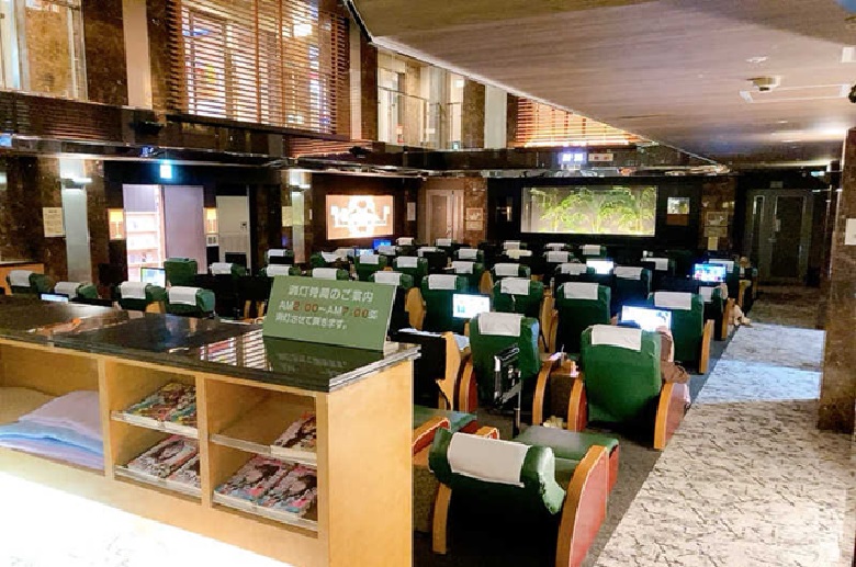 読み放題の漫画も大量にあり、リクライニングチェアなどの休憩コーナーも広々としているため、出張の合間にサウナと漫画で一息つきたいときにもぴったり。
