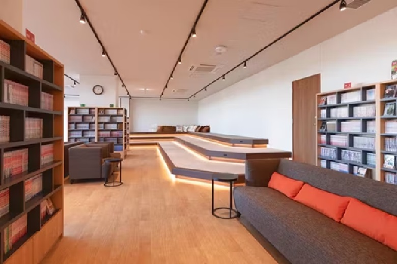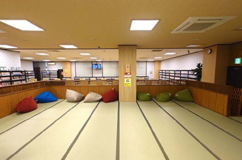 広々とした畳の休憩スペースや大型リクライニングチェアもあり、思い思いのスタイルで読書を楽しめる快適空間です。