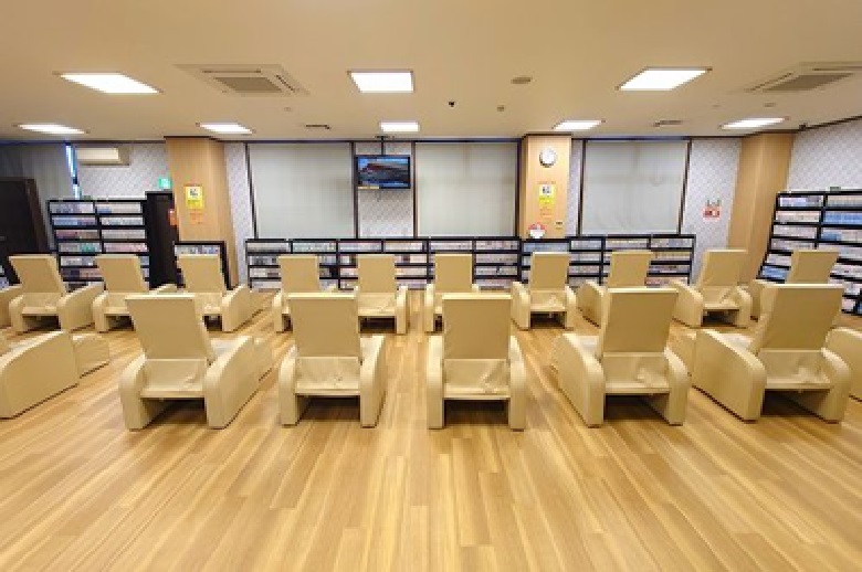 リラクゼーションコミックコーナーには、なんと約20,000冊のコミックや雑誌が揃っているので、1日中漫画を読みたい人におすすめ。