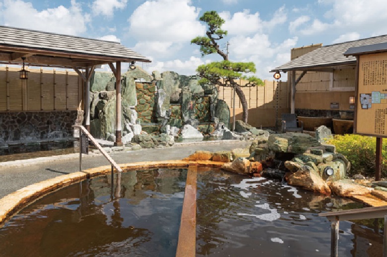 市原温泉 湯楽の里の露天風呂では、黒湯の天然温泉が楽しめます。地下1,500mから湧出したこの温泉は、200〜300万年前の海水が起源とされ、保温効果が高く「熱の湯」とも呼ばれています。