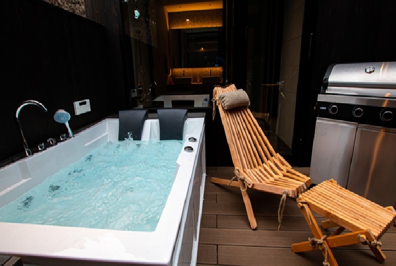 また、広々とした遠赤外線サウナ「熱汗房」と蒸気サウナを完備し、初心者から上級サウナーで楽しめるととのい環境も魅力です。約15℃の冷たい水風呂は深さがあり、しっかり全身を冷やせます。露天の外気浴スペースでは、開放的な景色の中で極上のリラックスタイムでしっかりととのえますよ。