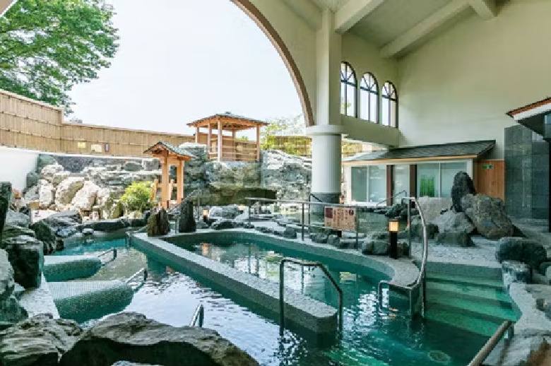 さらに、地下1,500mから湧く源泉かけ流しの天然温泉は、加温・加水なしの贅沢な湯質。広大な露天エリアには7種の多彩な風呂とサウナ・水風呂・外気浴も完備され、心も体もととのう極上のスパ体験が楽しめます。
