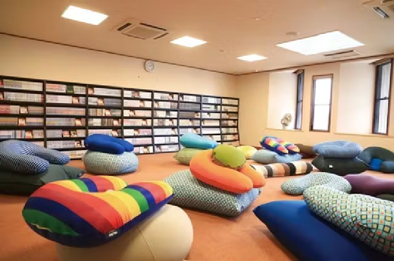 極楽湯 羽生温泉は天然温泉やサウナに加え、約6,000冊の漫画や雑誌が読み放題のリラクゼーションスペースも魅力です。畳敷きの広い空間にビーズクッションがあり、自宅のようにくつろげます。最新作から人気作まで幅広く、時間を忘れて楽しめるのが嬉しいポイント。