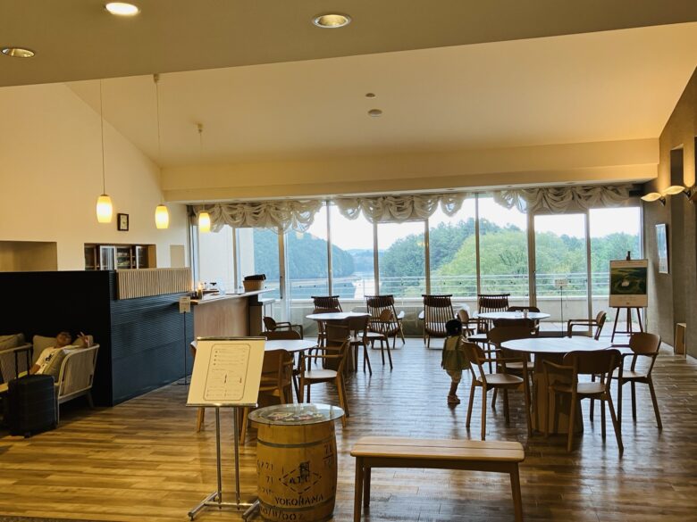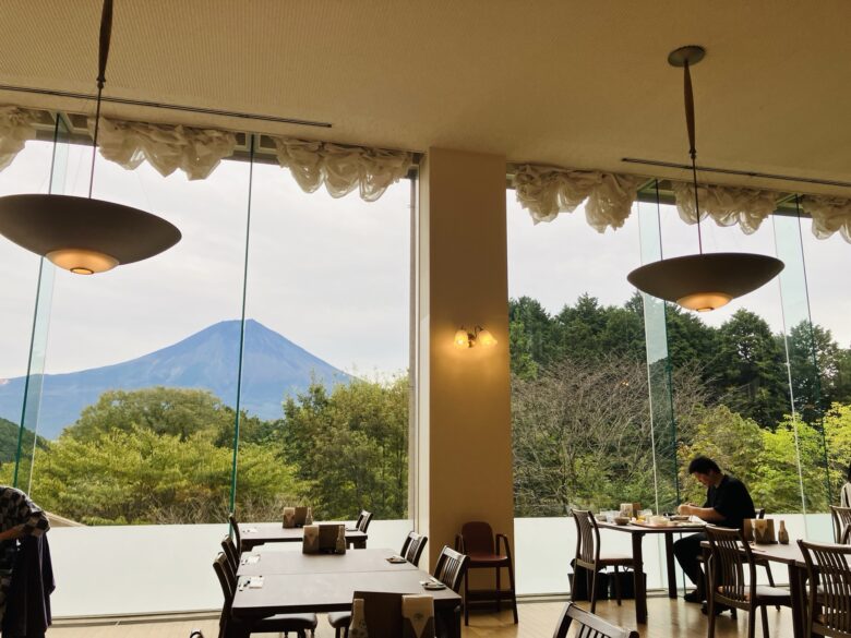 ロビーのすぐ近くにはカフェコーナーがあるので、富士山と田貫湖を眺めながらチェックイン手続き。