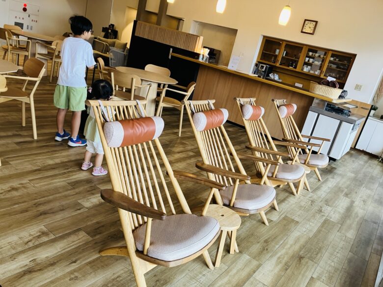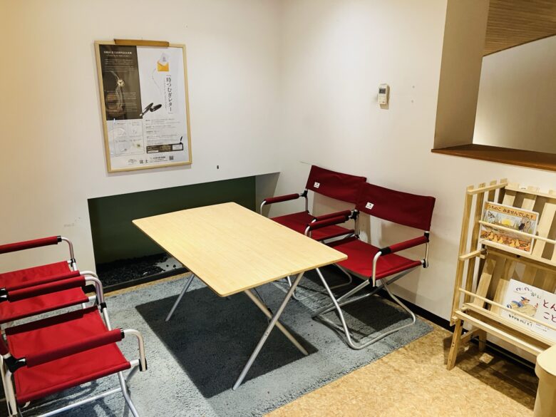 休憩用のチェアが4席と、子ども用の絵本もあり。