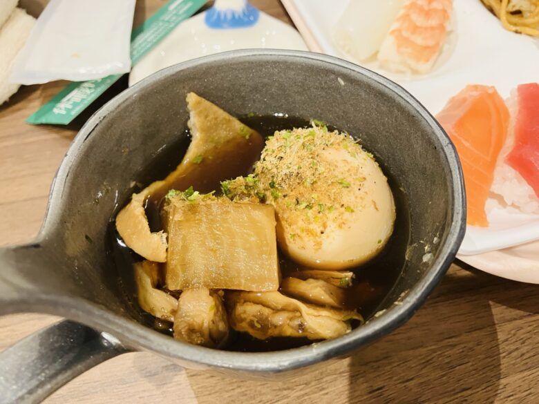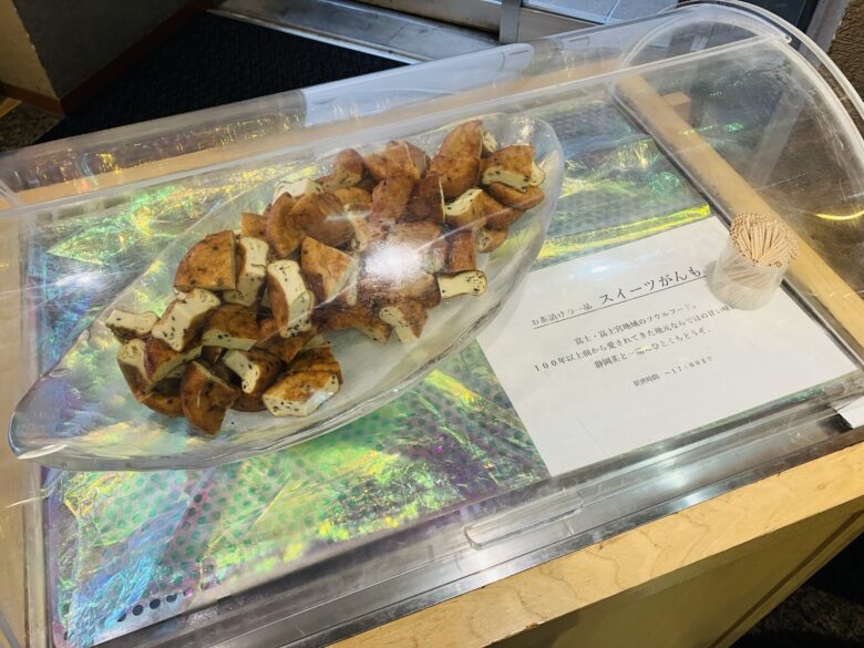 なんとウェルカムドリンクだけでなく、「スイーツがんも」も無料サービス!甘じょっぱくておいしいけど、夕食のために1個だけにしておきます。