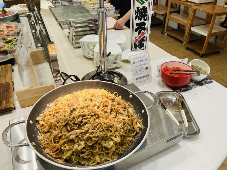 朝食も想像以上に充実!「富士の朝ごはん」と題されたブッフェでは、地元食材をふんだんに使ったメニューがずらり。