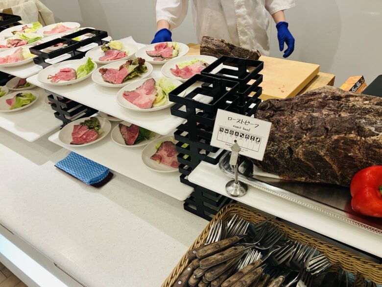 休暇村のビュッフェといえば、ライブキッチン。シェフが目の前で握るお寿司やローストビーフ、揚げたての天ぷらが大人気。