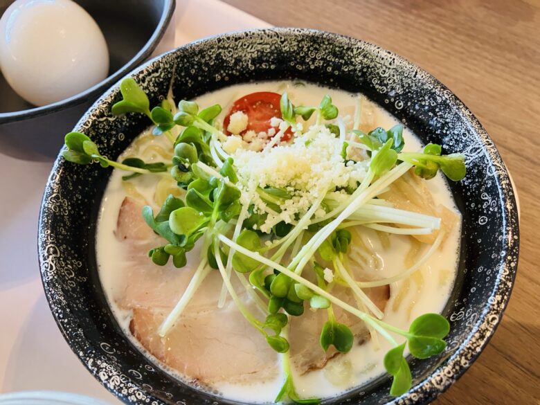 富士宮産の牛乳を使った「ミルクラーメン」は白湯スープ×ミルクの絶妙バランスがクセになる味。シチューに近いかな?こっくりまろやかで、朝からラーメンも全然アリ。