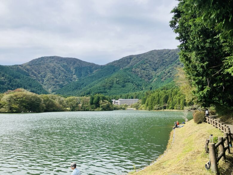 休暇村富士も見えました。湖畔のサイクリング、めちゃくちゃ気持ちいいのでぜひ体験してみてください。
