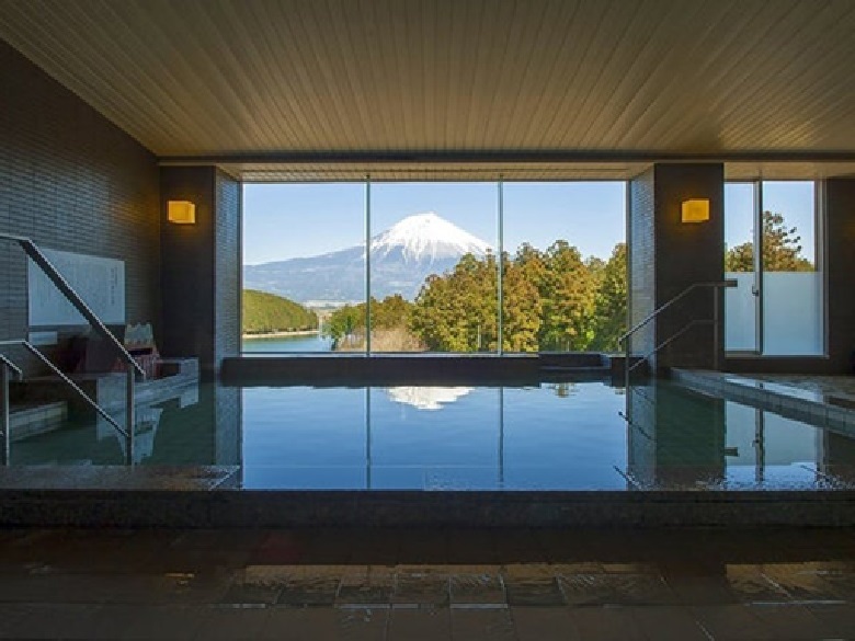 大浴場に入った瞬間、目の前に広がるのはガラス越しの圧巻の富士山。湯船に浸かりながらこの景色、贅沢です。