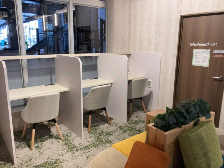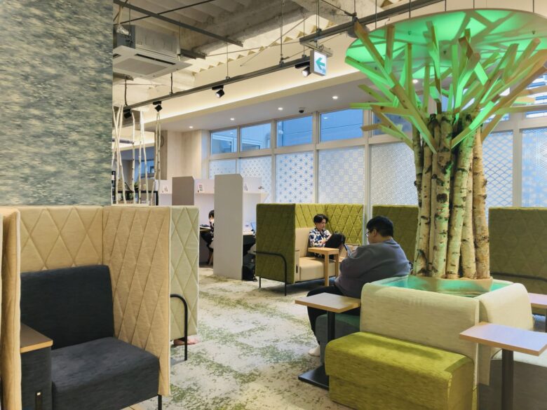 静かに過ごせるPCブースや電源完備のコワーキングスペースもあり、気分に合わせた使い分けが可能。