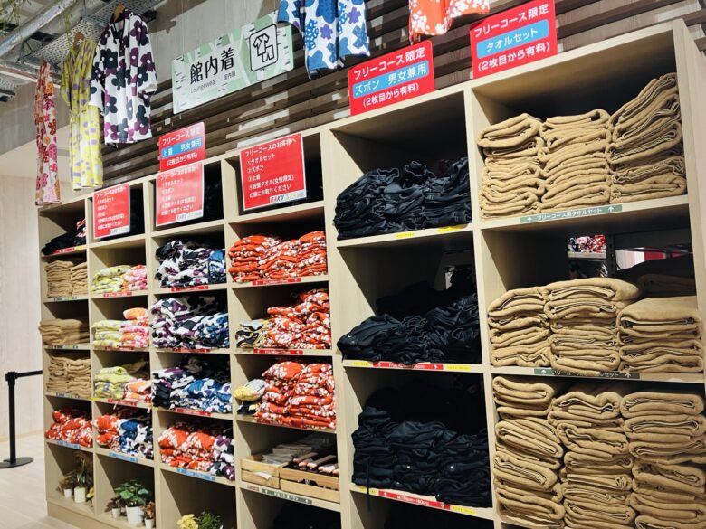 rakuspa武蔵小金井の入浴料(フリー)には、タオルセット、館内着が含まれています。シャンプー・コンディショナー・ボディーソープは浴場に備え付けがありますので、基本的には手ぶらで行っても大丈夫ですよ。